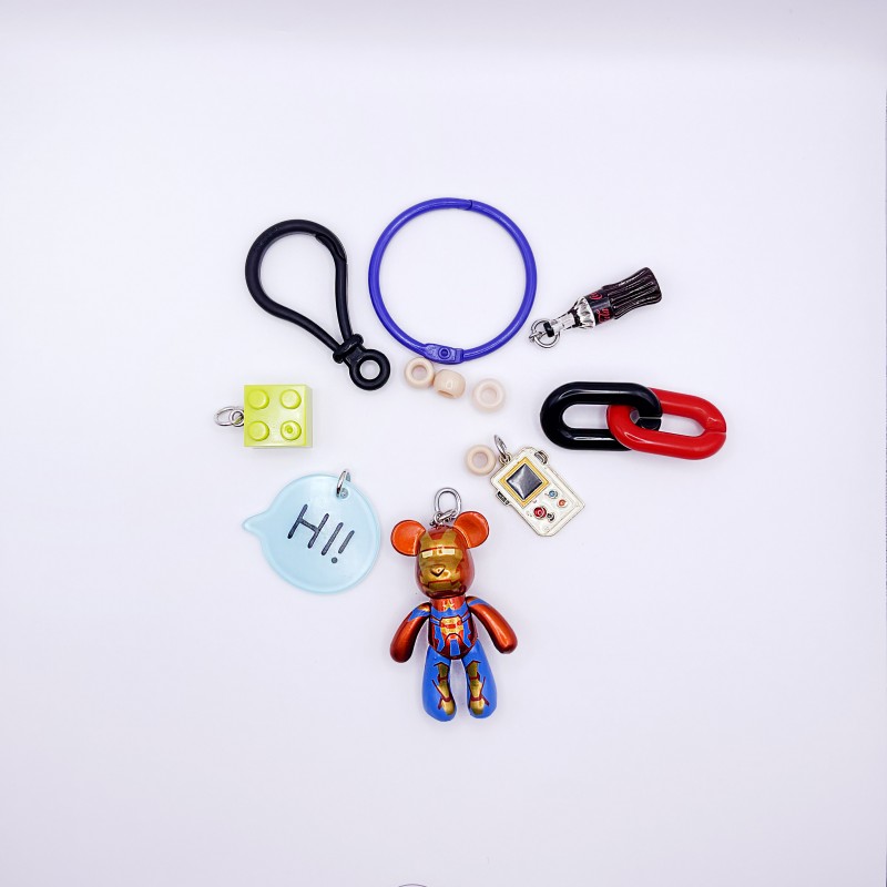 키링에는 인형을 포함한 펜던트가 3~4개 달려 있습니다.