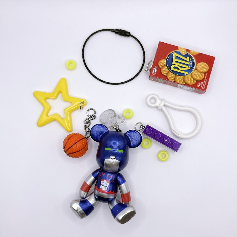 키링에는 인형을 포함한 펜던트가 3~4개 달려 있습니다.