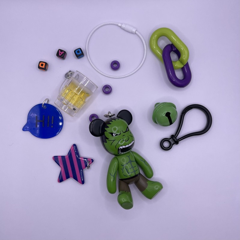 키링에는 인형을 포함한 펜던트가 3~4개 달려 있습니다.