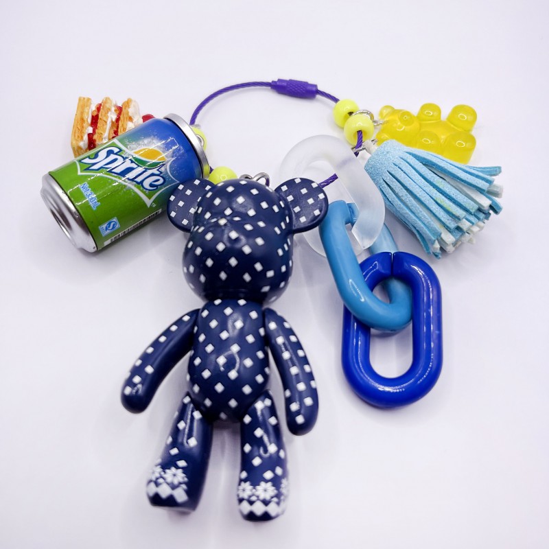 키링에는 인형을 포함한 펜던트가 3~4개 달려 있습니다.