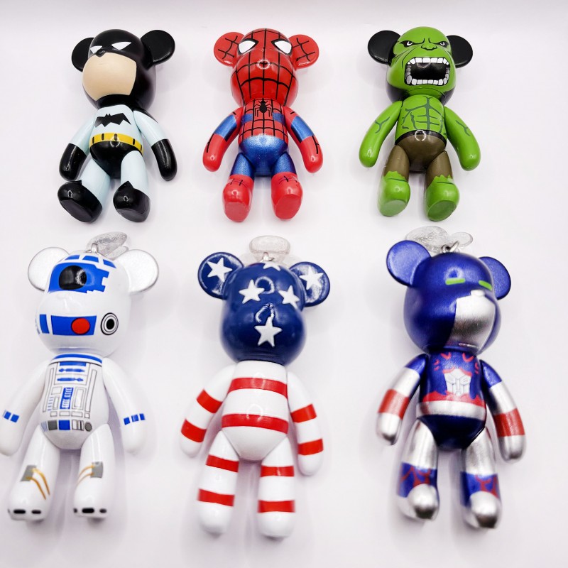 키링에는 인형을 포함한 펜던트가 3~4개 달려 있습니다.